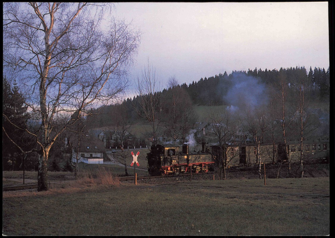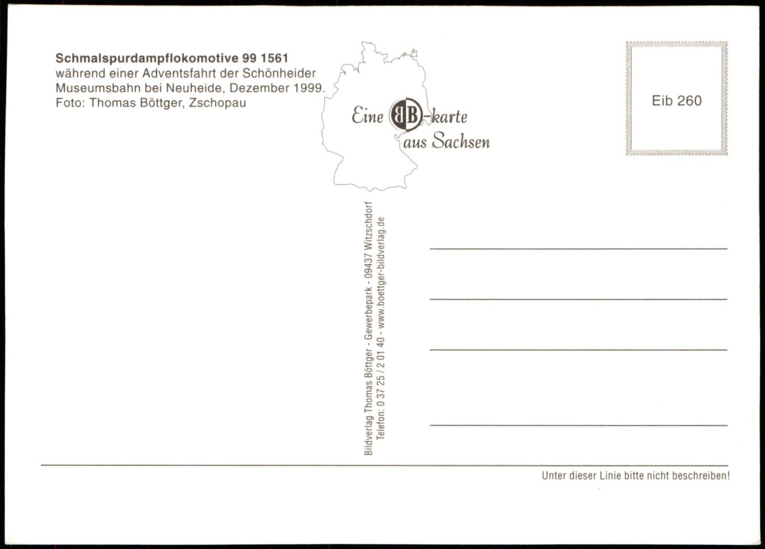 Foto Karte: Schmalspurdampflokomotive Adventsfahrt der Schönheider Museumsbahn bei Neuheide