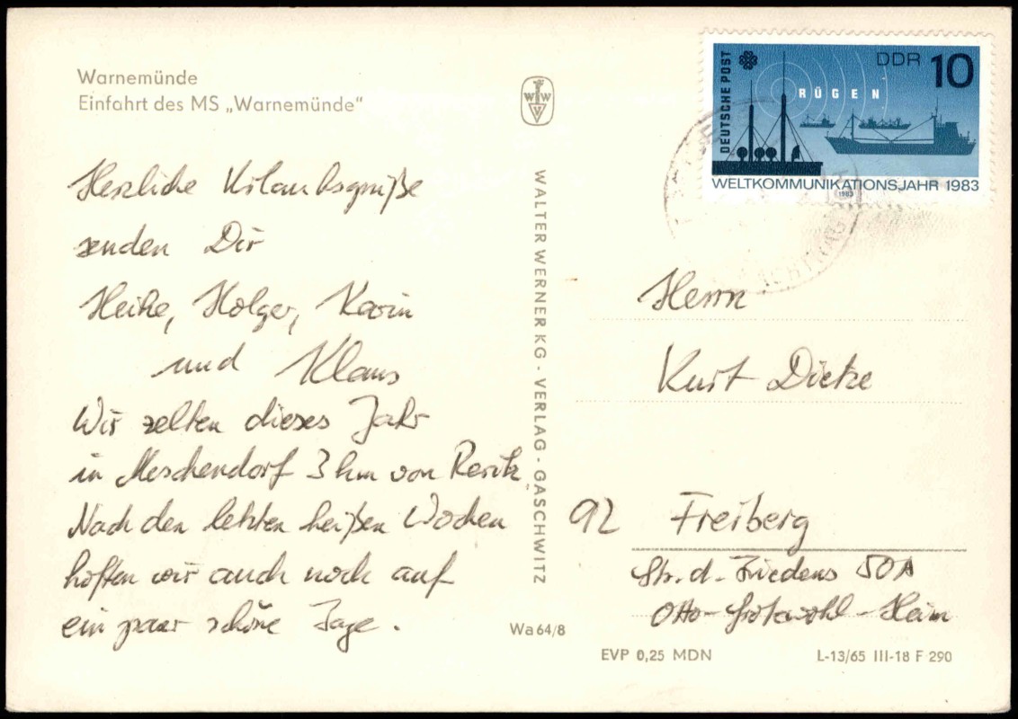 Ansichtskarte: Einfahrt der Fähre - Warnemünde-Rostock