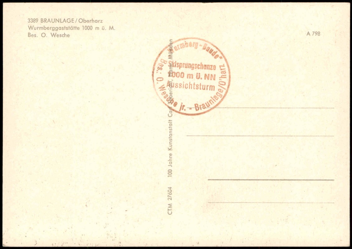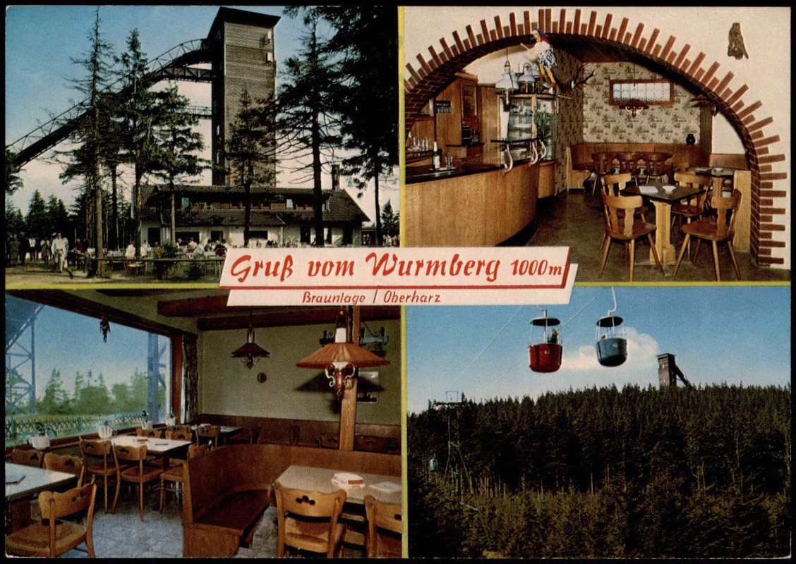 Ansichtskarte: Wurmberggaststätte Gastraum Seilbahn Harz - Braunlage