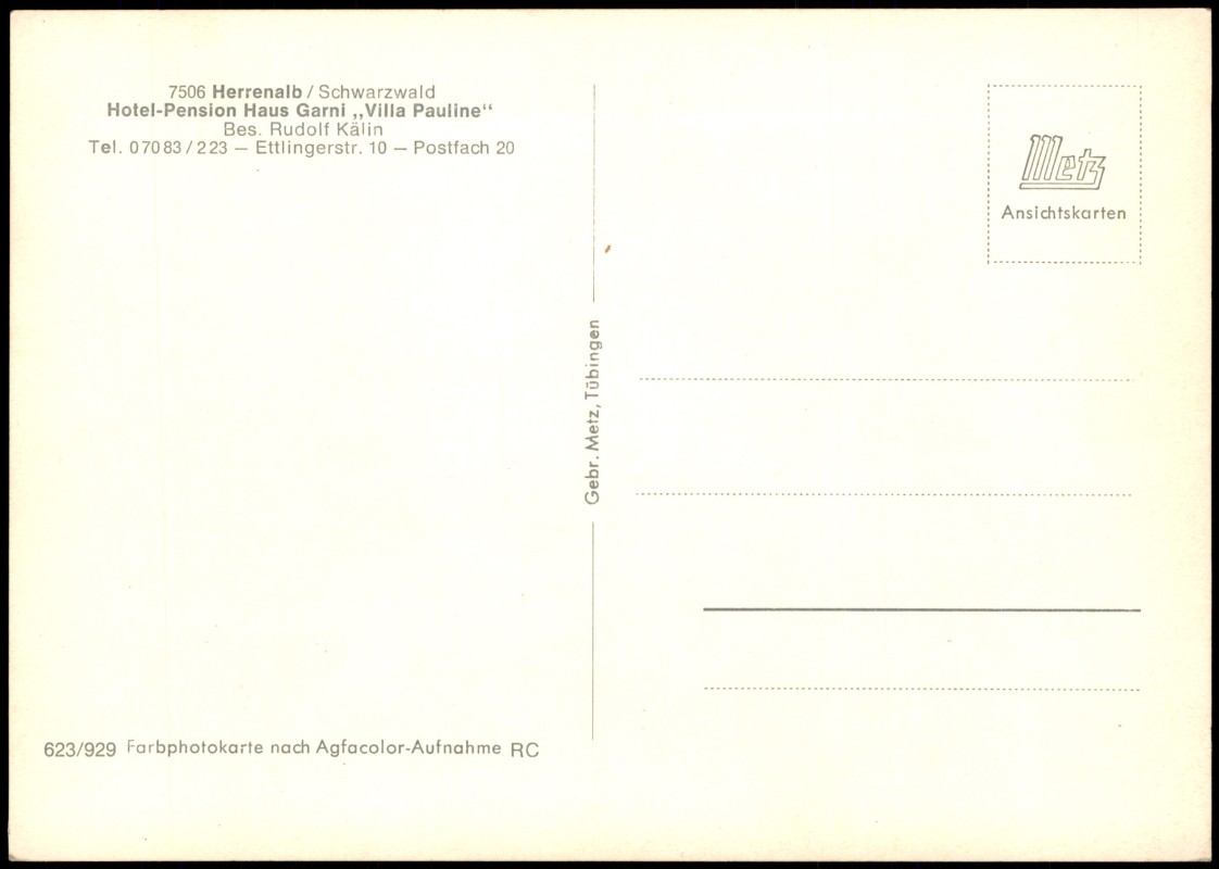 Foto Karte: Hotel-Pension Haus Garni Villa Pauline Bes. Rudolf Kälin - Bad Herrenalb
