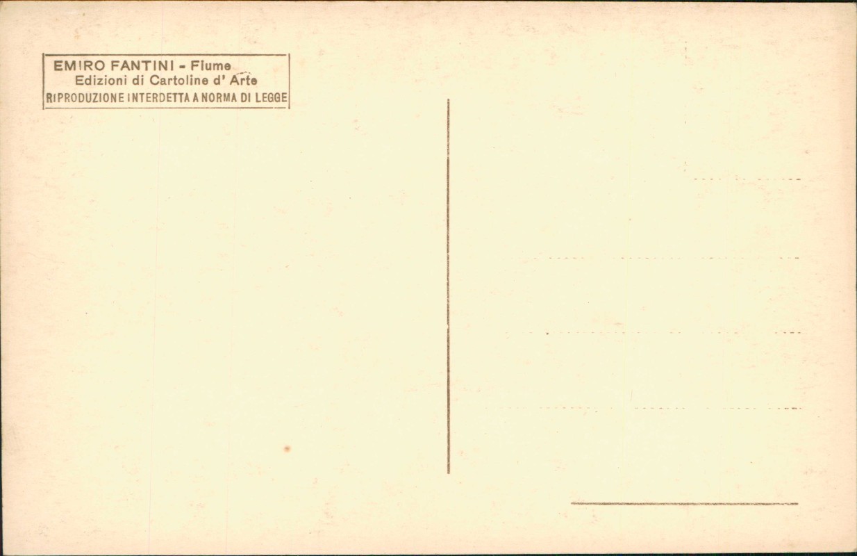 - Panoramablick auf die Küstenstadt Laurana (heute Lovran, Kroatien) mit ihren Häusern, dem markanten Kirchturm und dem Hafen, eingebettet in eine bewaldete Hügellandschaft am Meer. Im Hintergrund sind Berge zu sehen. Herausgegeben von Emiro Fantini, Fiume, als Teil der 'Edizioni di Cartoline d' Arte' mit der Seriennummer N. 152.