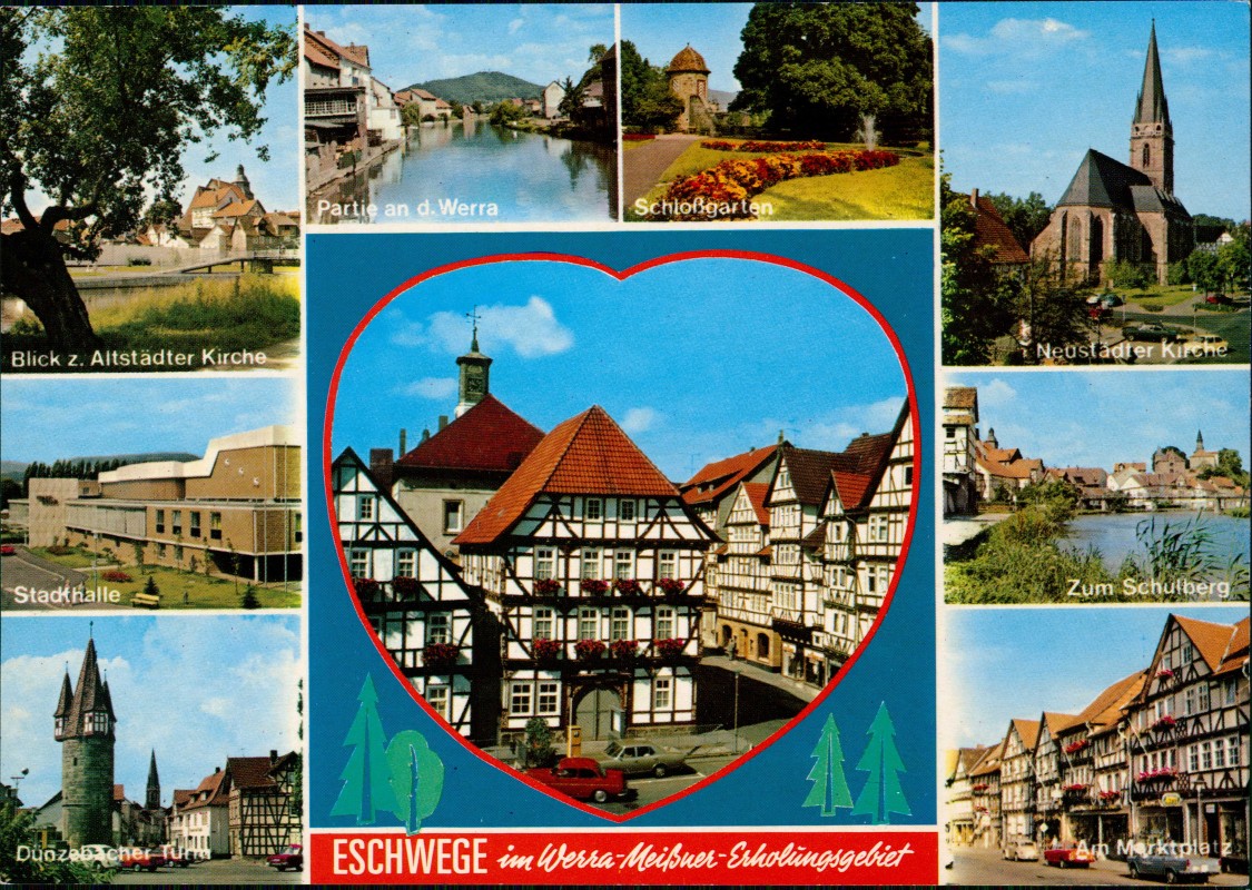 Foto Karte: Stadtteilansichten u.a. Schloßgarten Stadthalle Partie an d. Werra - Eschwege
