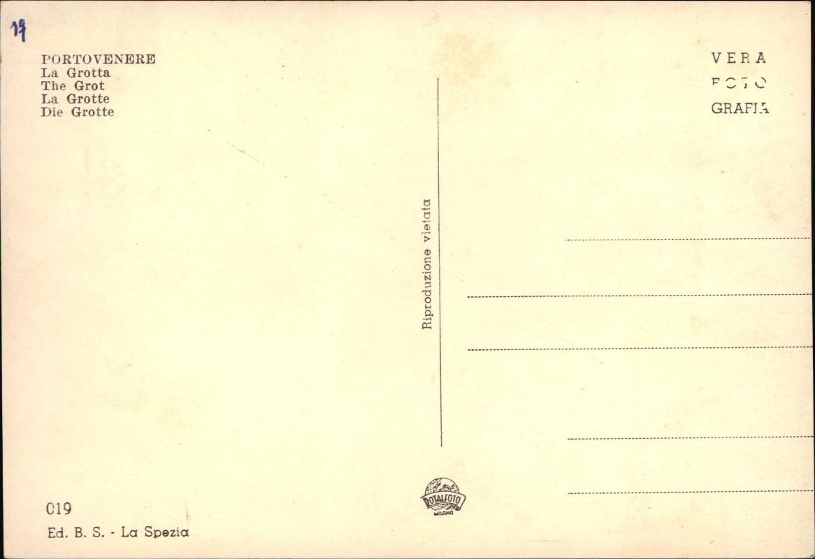 historische Ansichtskarte von 1971: La GrottaThe Grot La Grotte - Colorfotokarte:: Porto Venere Adressseite