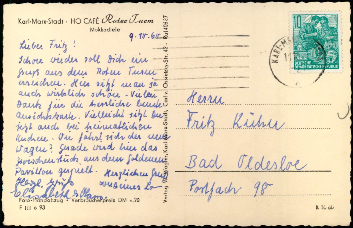 Ansichtskarte: HO CAFÉ Roter Turm - Mokkadiele - Chemnitz