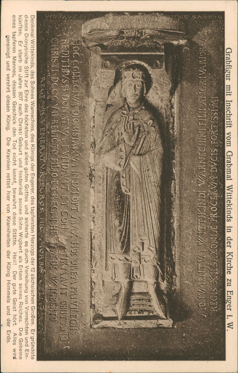Ansichtskarte: Grabfigur mit Inschrift vom Grabmal Wittekinds Kirche - Enger (Westfalen)