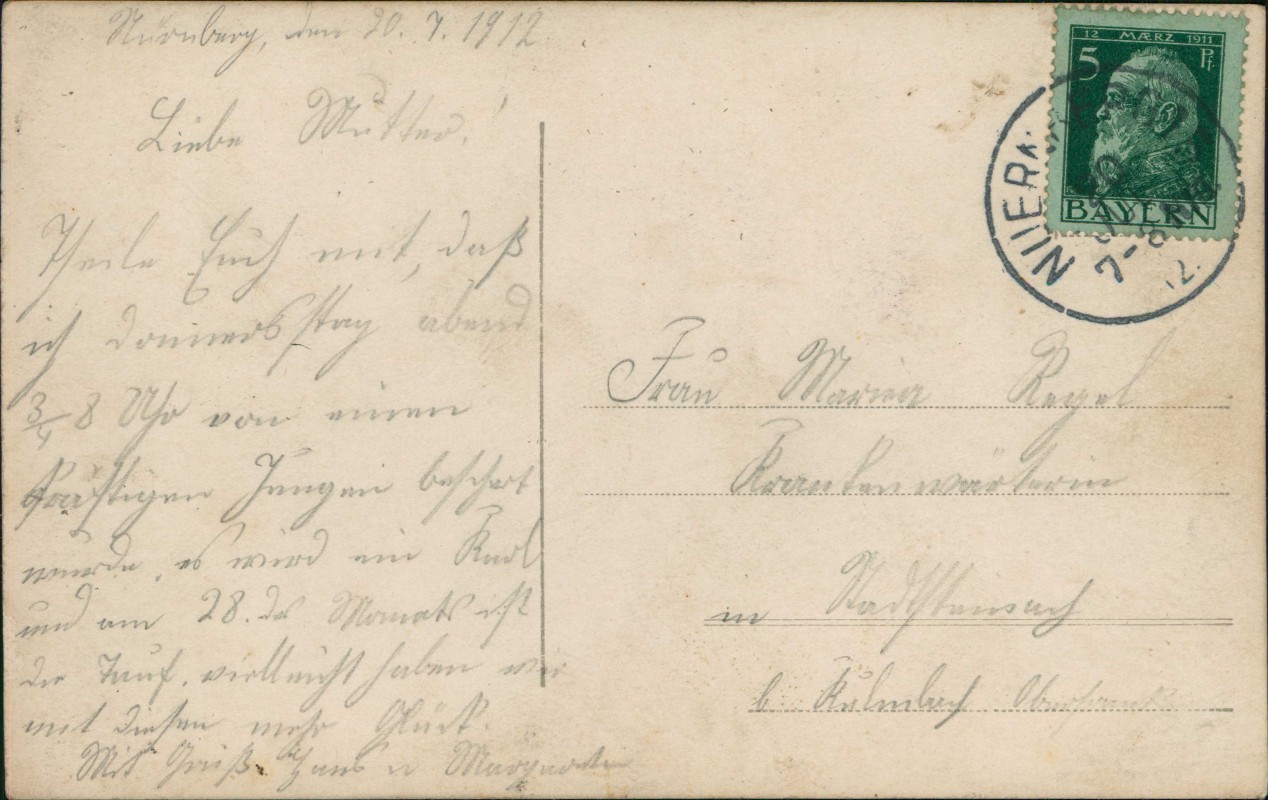 Foto Karte: Mann und Frau vor Schrebergarten Kleingarten - Nürnberg