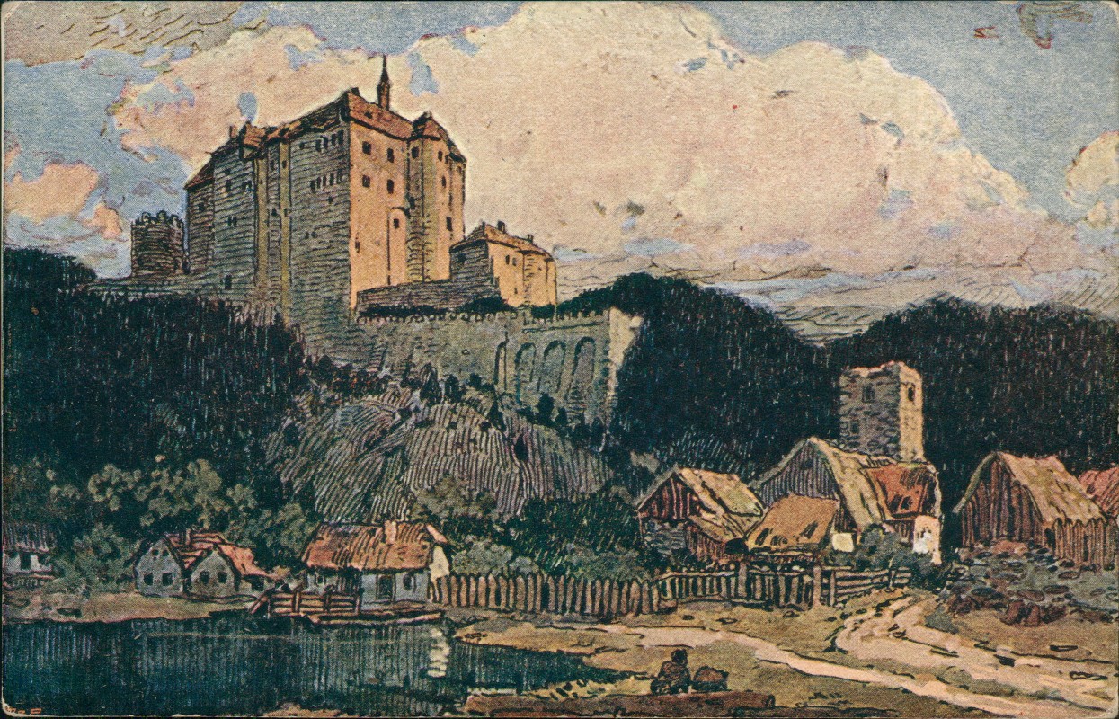 Ansichtskarte: Künstlerkarte Schloß Stadt - Böhmisch Sternberg