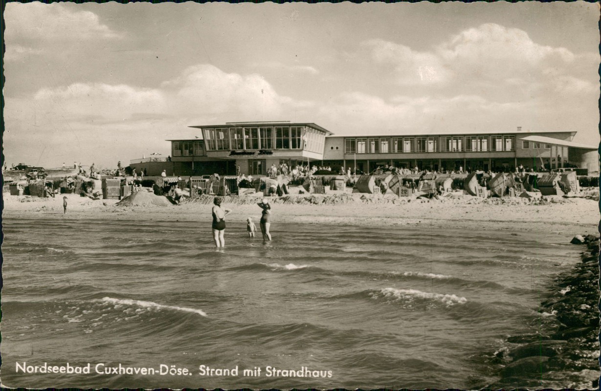 Ansichtskarte: Strand mit Strandhaus - Fotokarte - Döse-Cuxhaven