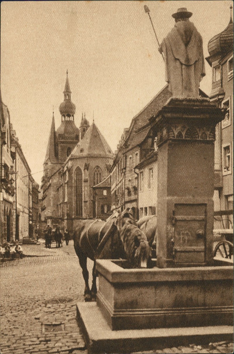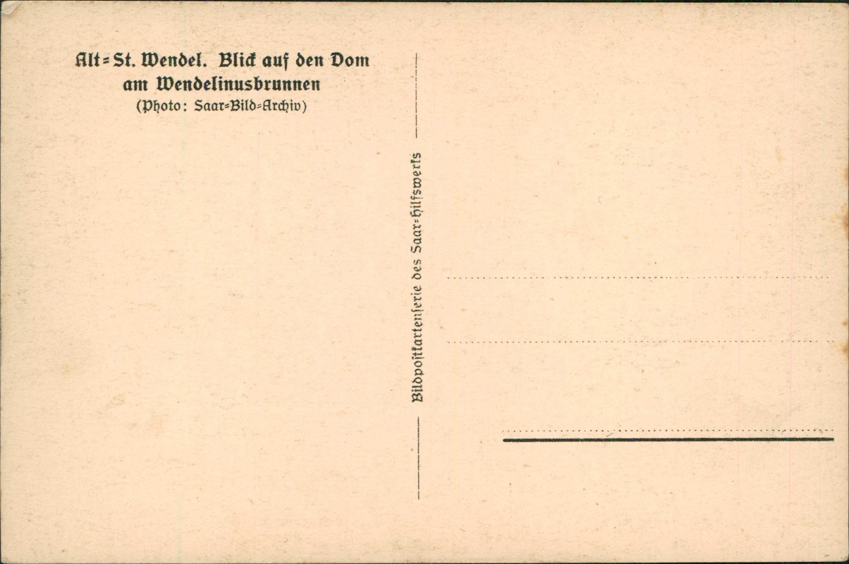 Ansichtskarte: Blick auf den Dom am Wendelinusbrunnen Pferde - Sankt Wendel