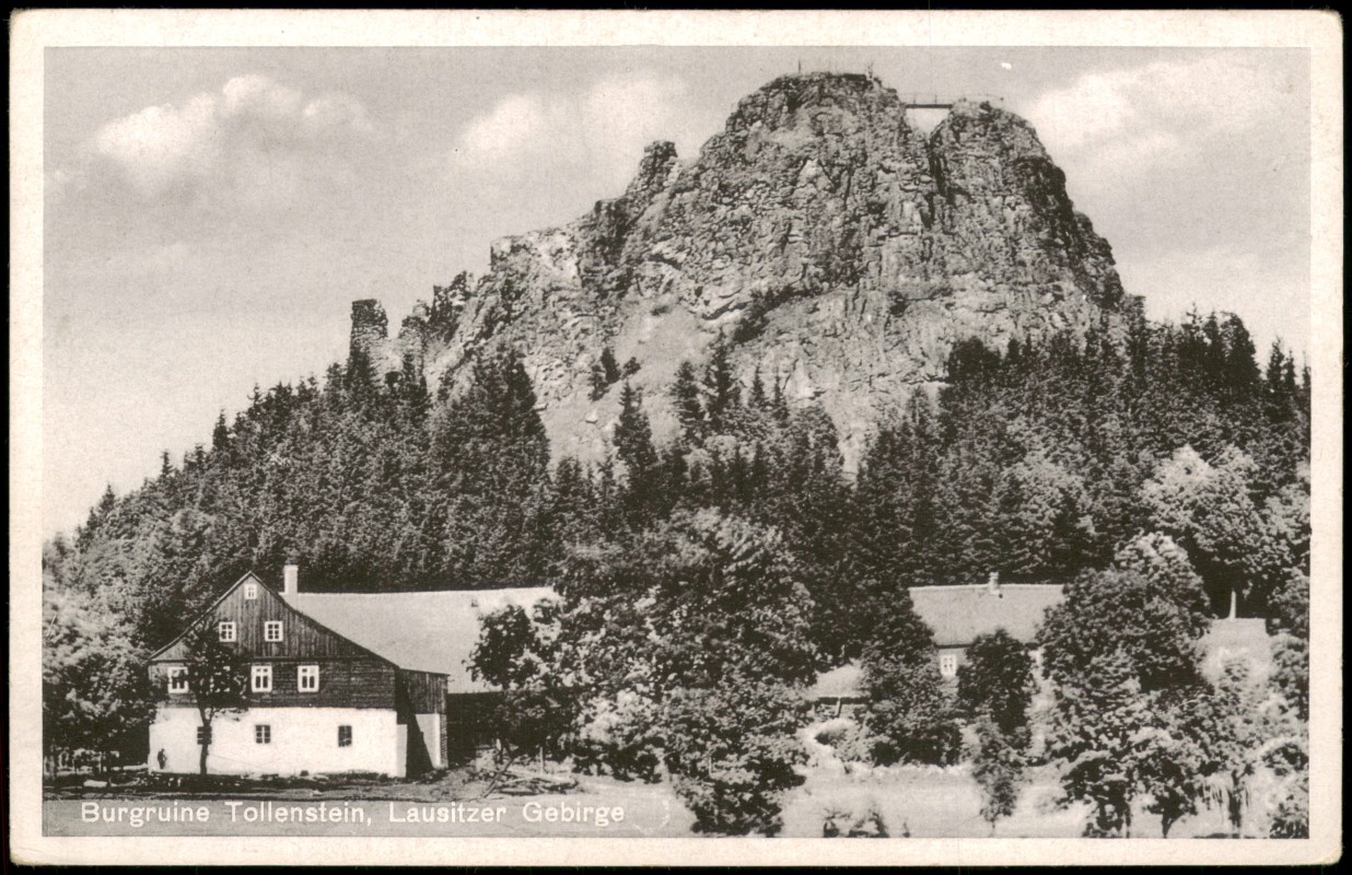 diese Karte können Sie hier kaufen:- Tollenstein-Sankt Georgenthal Rozhled Jiřetín Burgruine Tollenstein Gehöft 1934