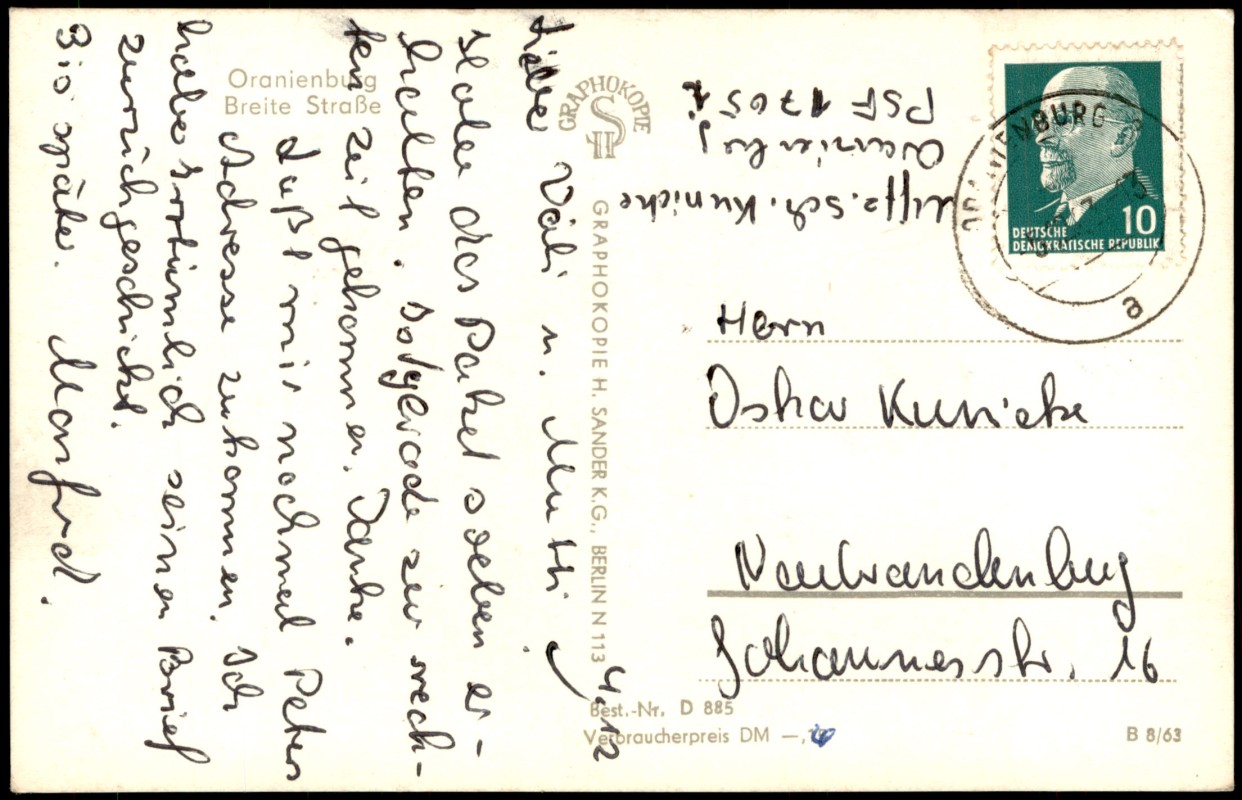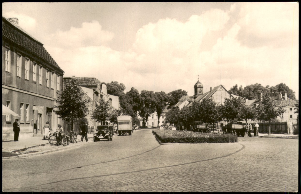 Foto Karte: Breite Straße Ortsansicht Personen Fahrzeuge DDR AK - Oranienburg