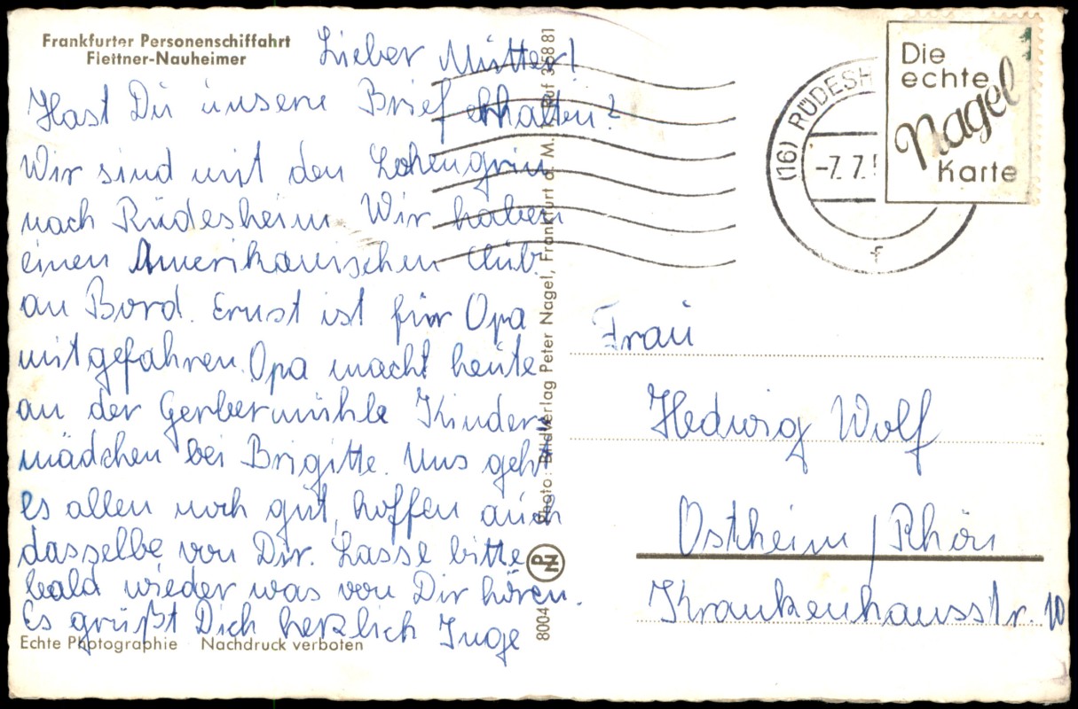 Ansichtskarte: Personenschiffahrt Flettner-Nauheimer Neubauten - Frankfurt am Main