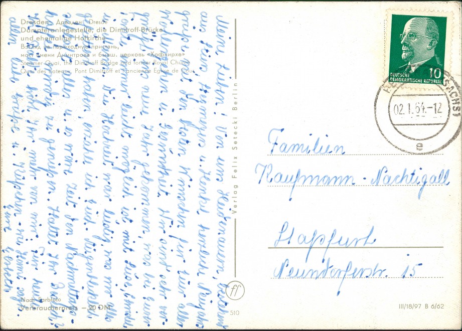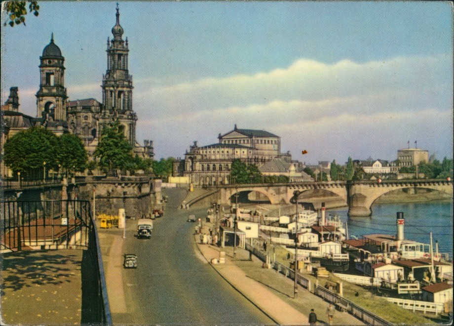 - Dampferanlegestelle, die Dimitroff-Brücke und ehemalige Hofkirche
