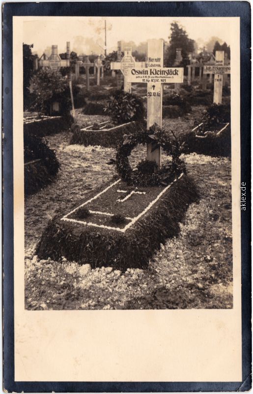 Ansichtskarte: Friedhöfe - Grab von Oswin Kleinstück, geb.: 02.12.1878 zu Oberlichtenau i. S. gest.: 20.10.1916