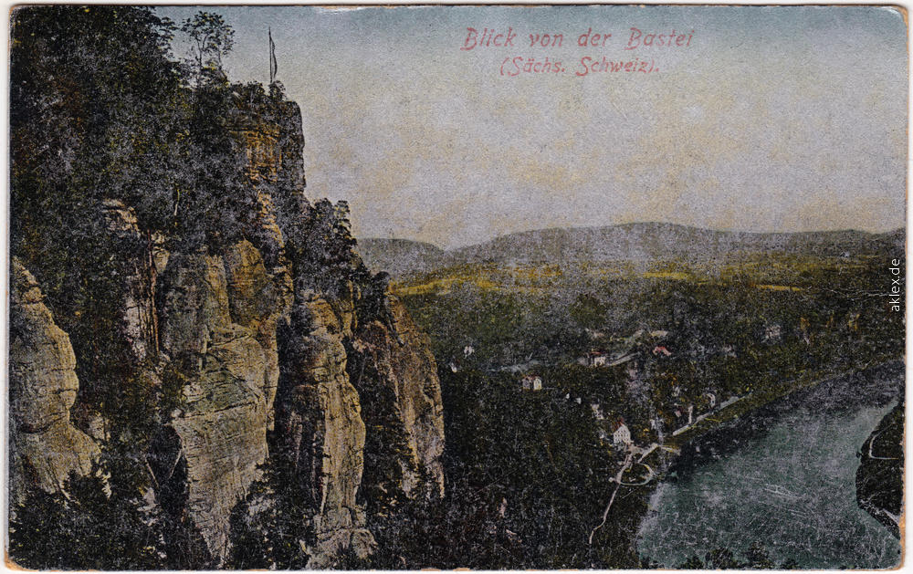 Ansichtskarte: Blick von der Bastei (Effektkarte) - Rathen