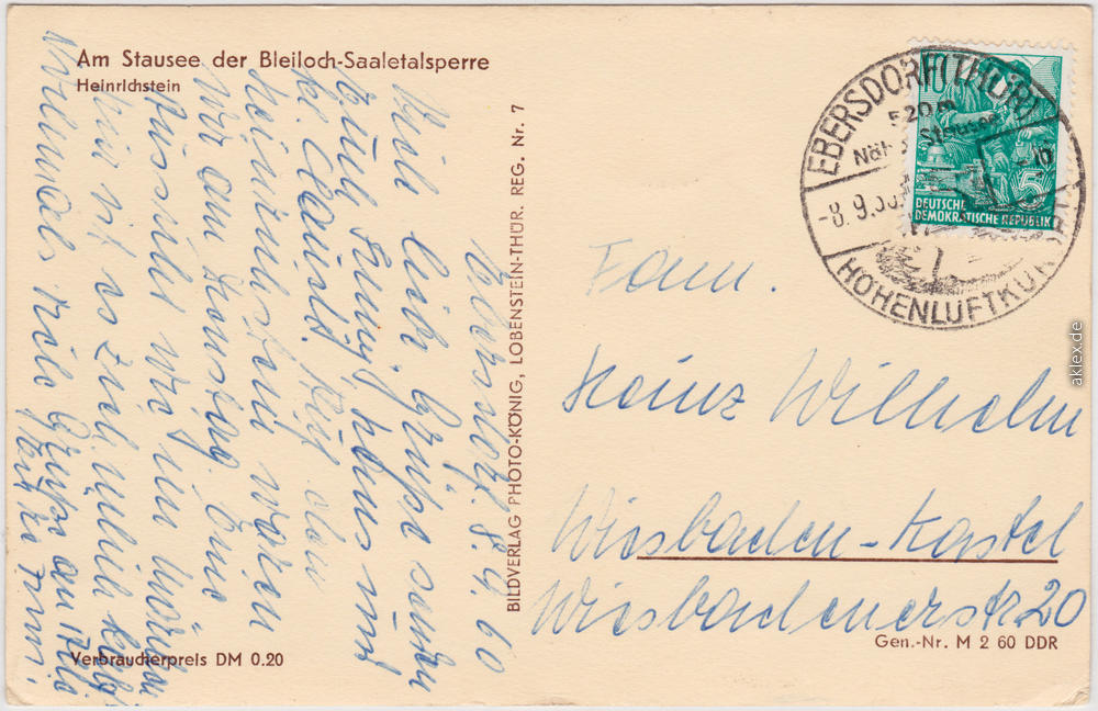 Ansichtskarte: Am Stausee der Bleiloch-Saaletalsperre - Heinrichstein - Saalburg-Ebersdorf (Saale)