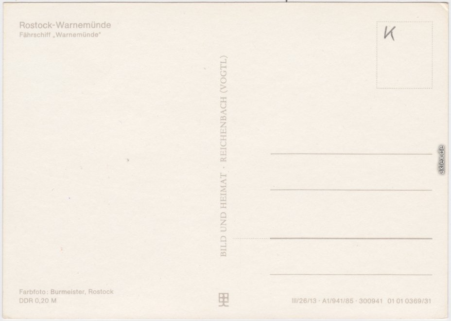 Ansichtskarte: Fährschiff "Warnemünde" - Warnemünde-Rostock