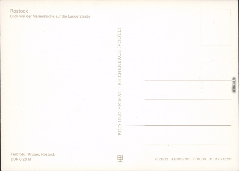 historische Ansichtskarte von 1985: Lange Straße:: Rostock Adressseite