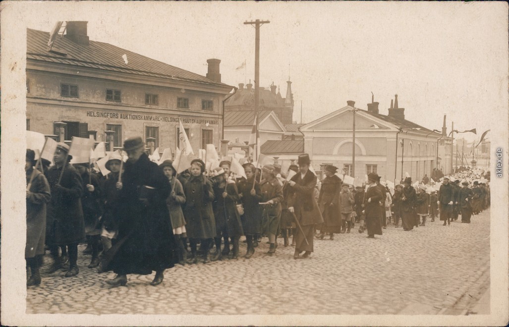 Foto Karte: Schüler-Marsch Lehrer, gegrüßt vom Presidenten - Helsinki