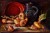 Künstlerkarte Stillleben Knoblauch Messinggeschirr