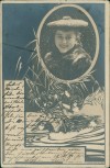 Künstlerkarten Mode Kleidung - Frau mit Schirm colorierte AK